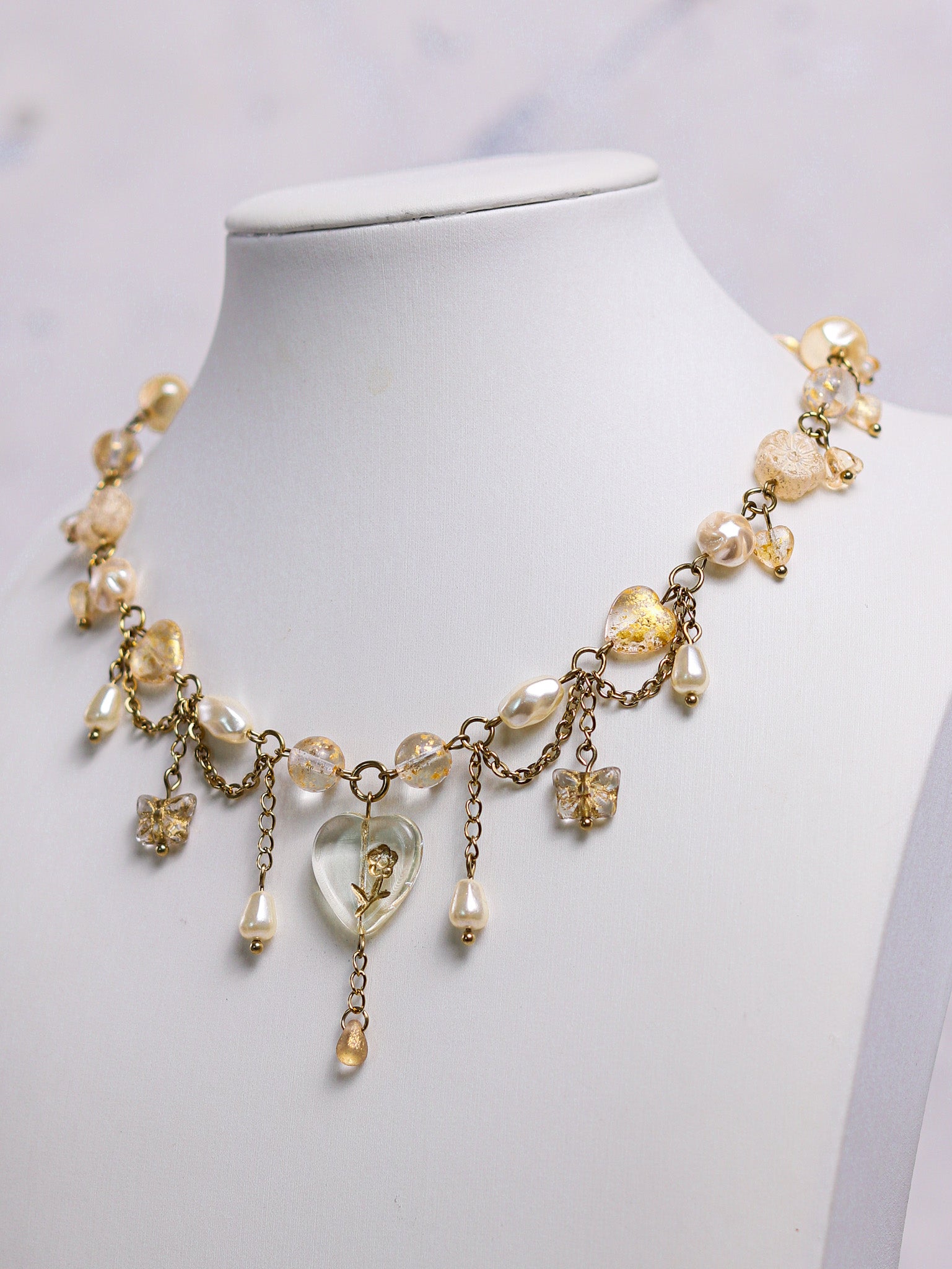Made with high quality Czech glass beads and glass imitation pearls. The wire and chains are gold plated stainless steel (waterproof and tarnish-resistant).
