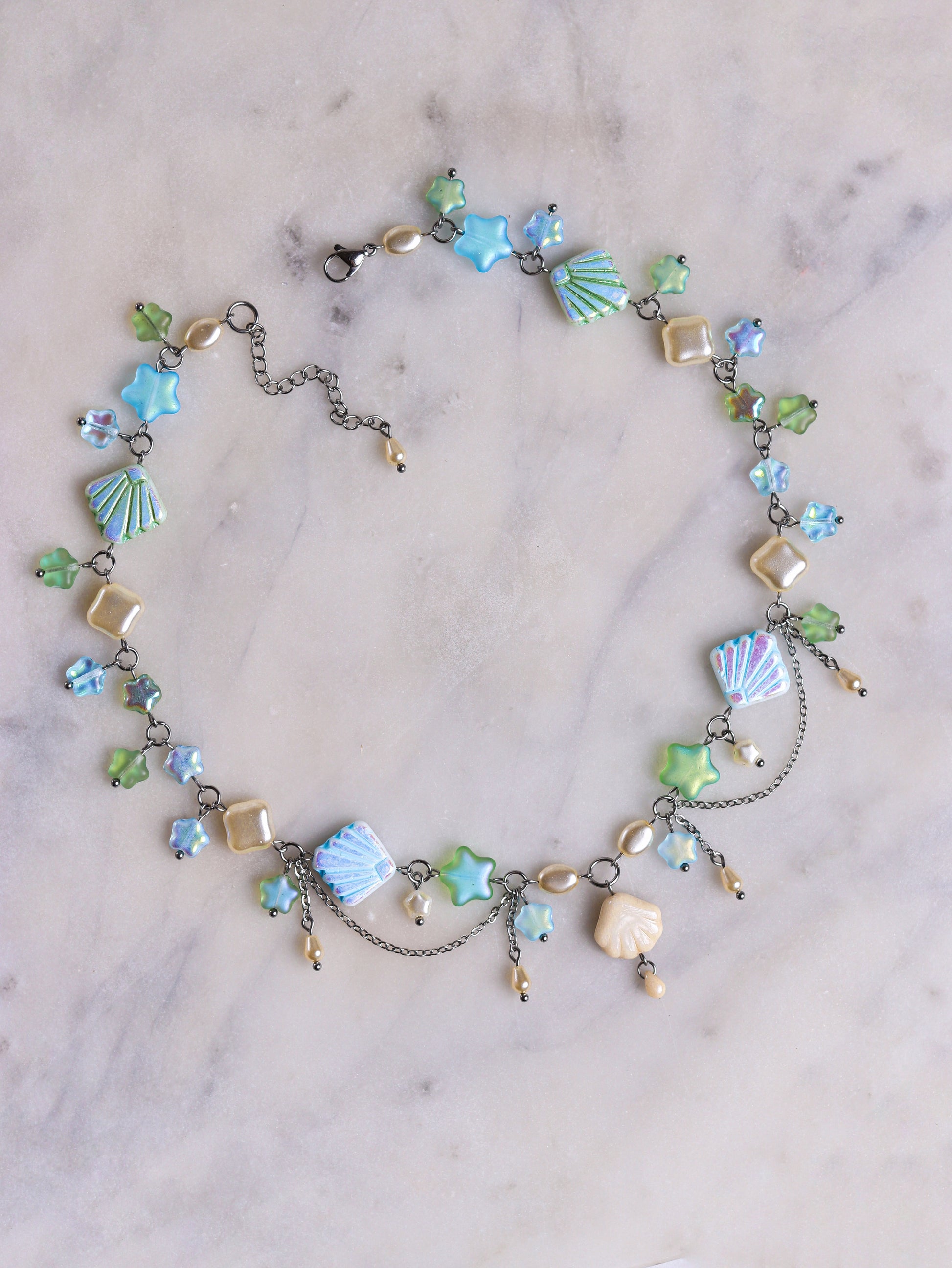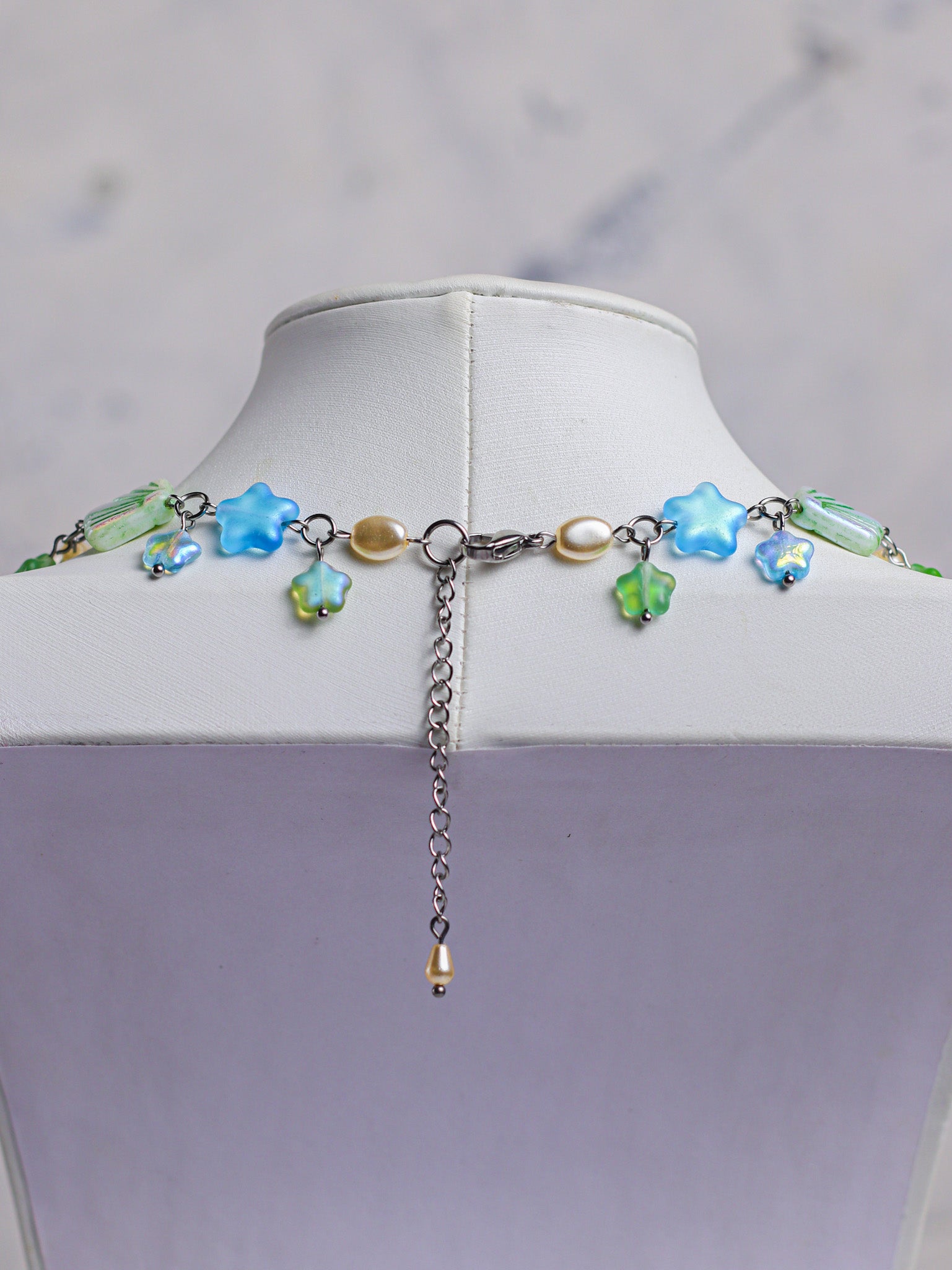 Made with high quality Czech glass beads and glass imitiation pearls. The wire and chains are stainless steel (waterproof and tarnish-resistant).