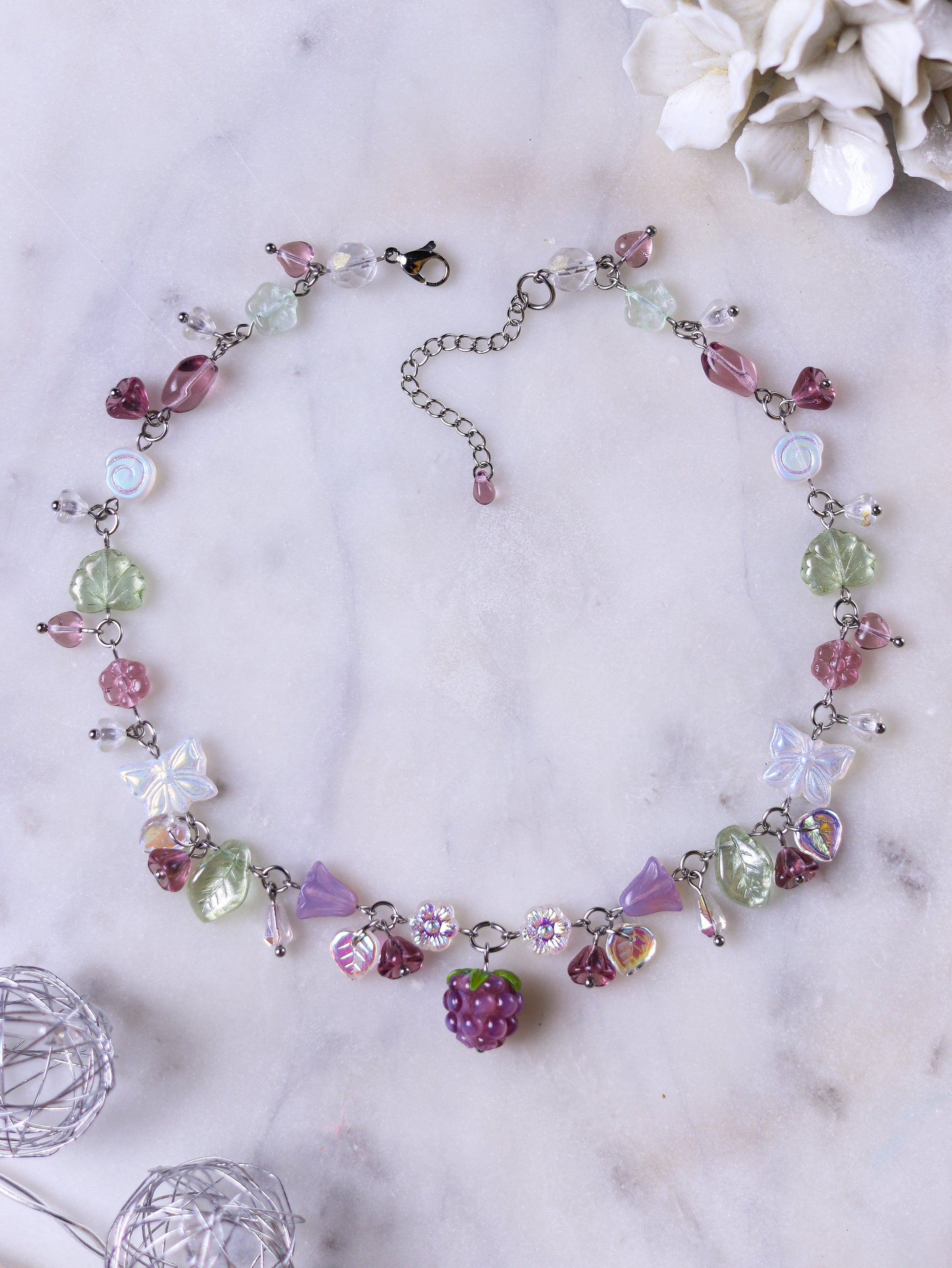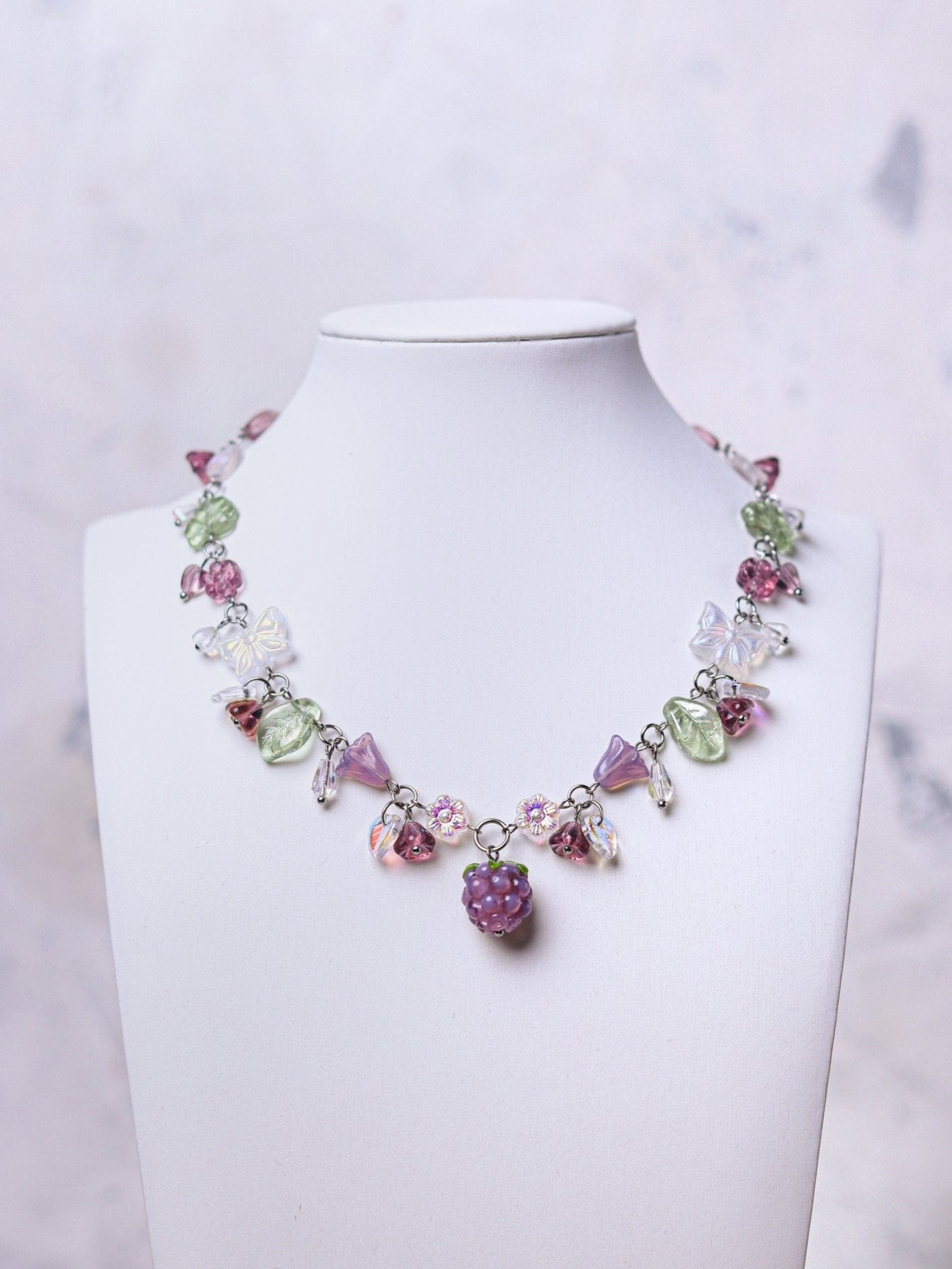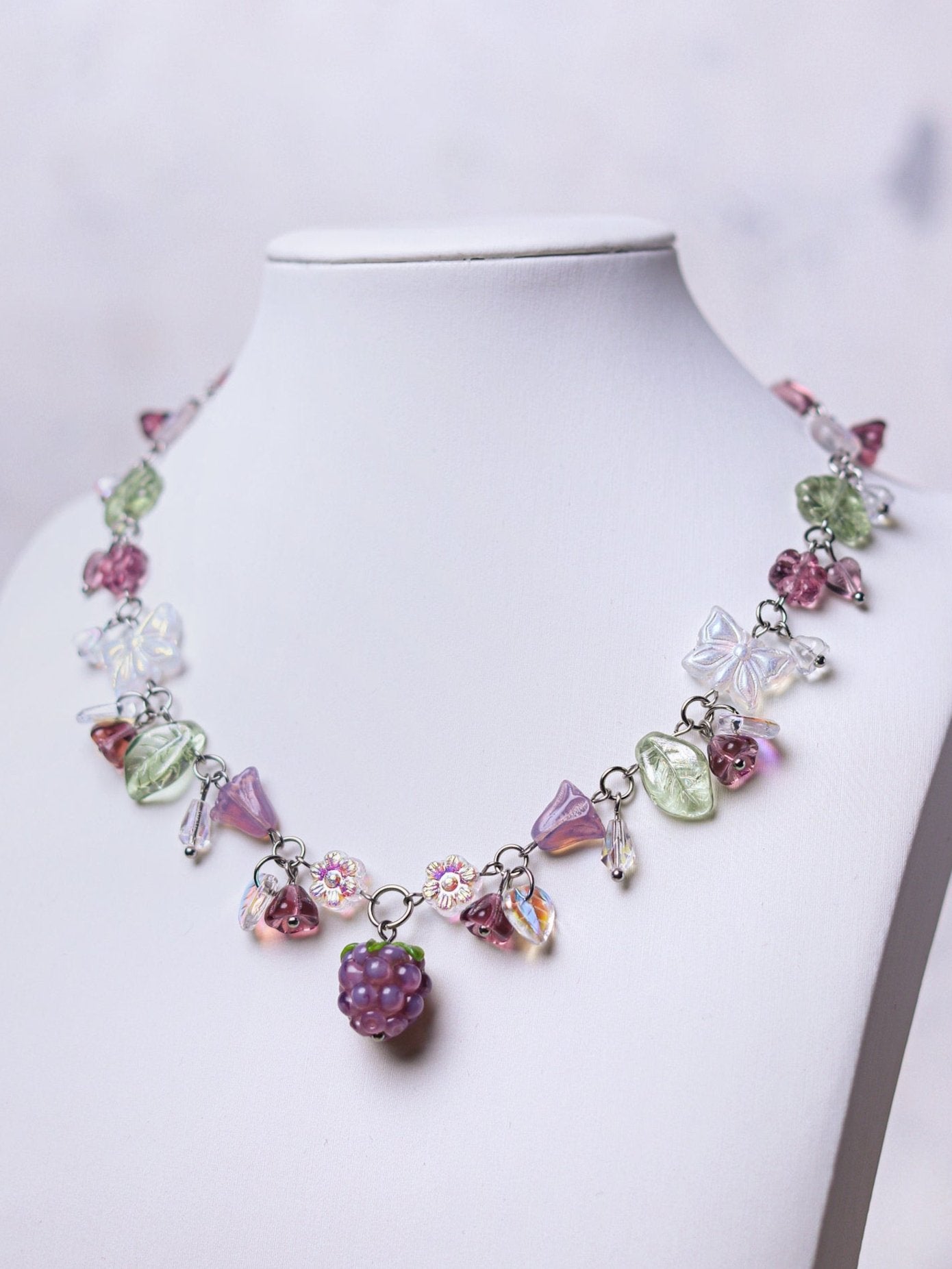 Made with high quality Czech glass beads and lampwork raspberry bead. The wire and chains are stainless steel (waterproof and tarnish-resistant).