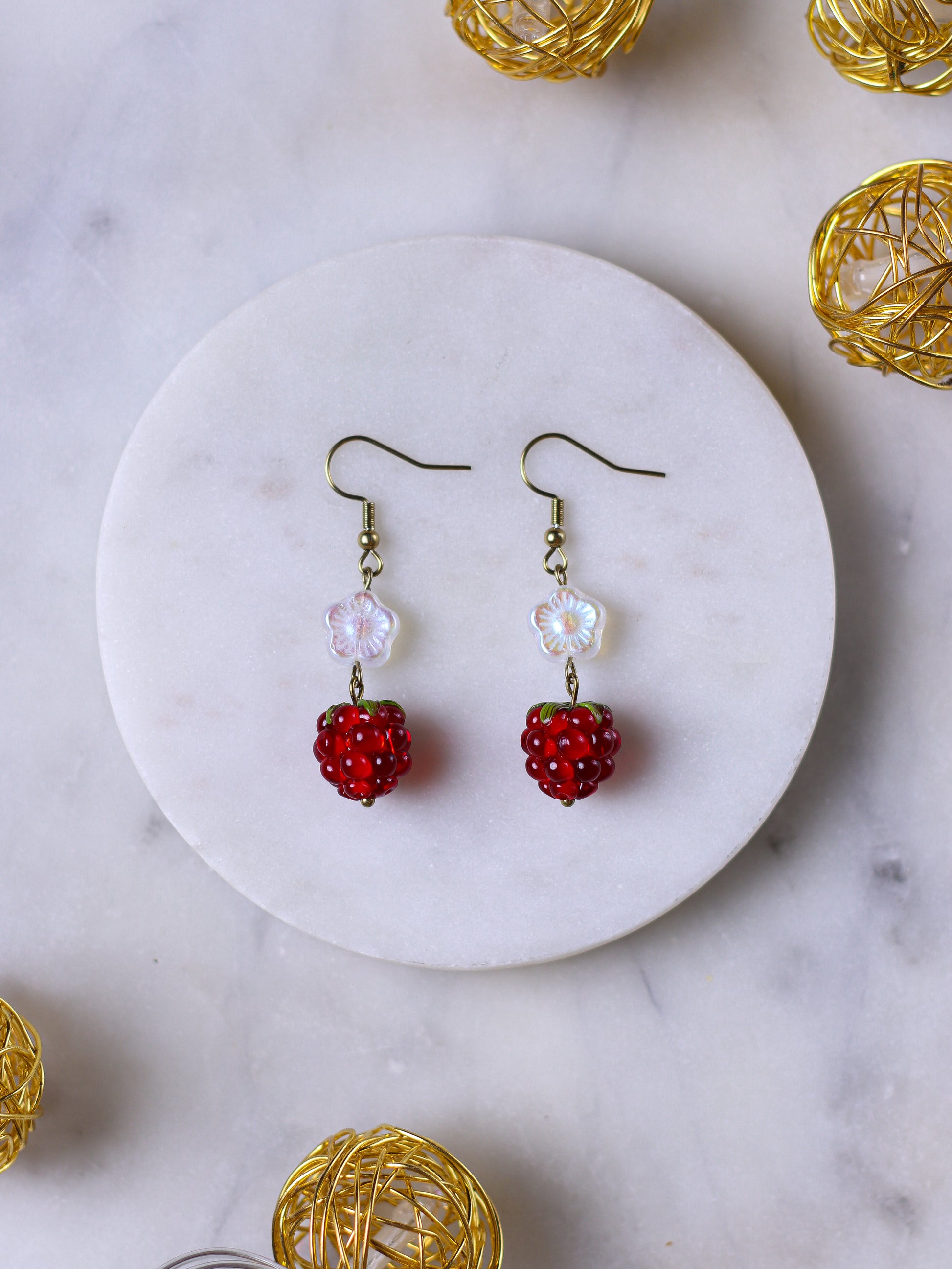 Red Raspberry Earrings (gold)