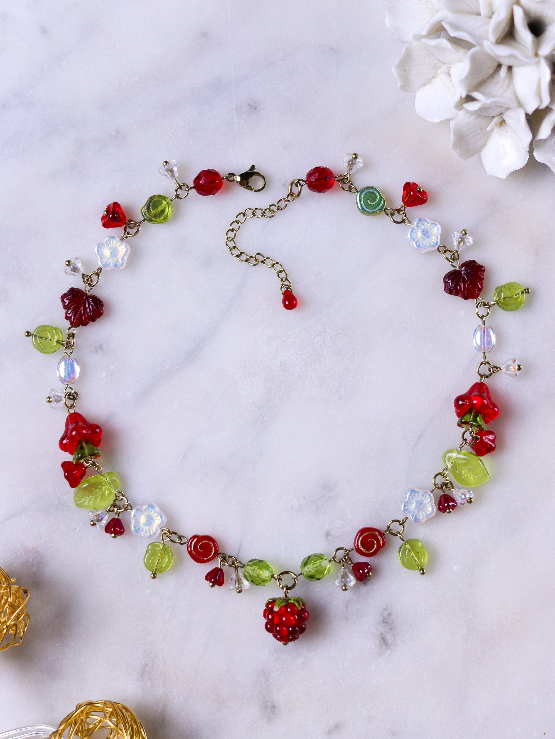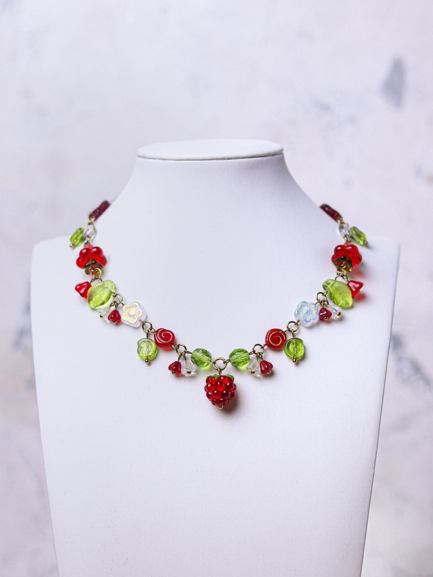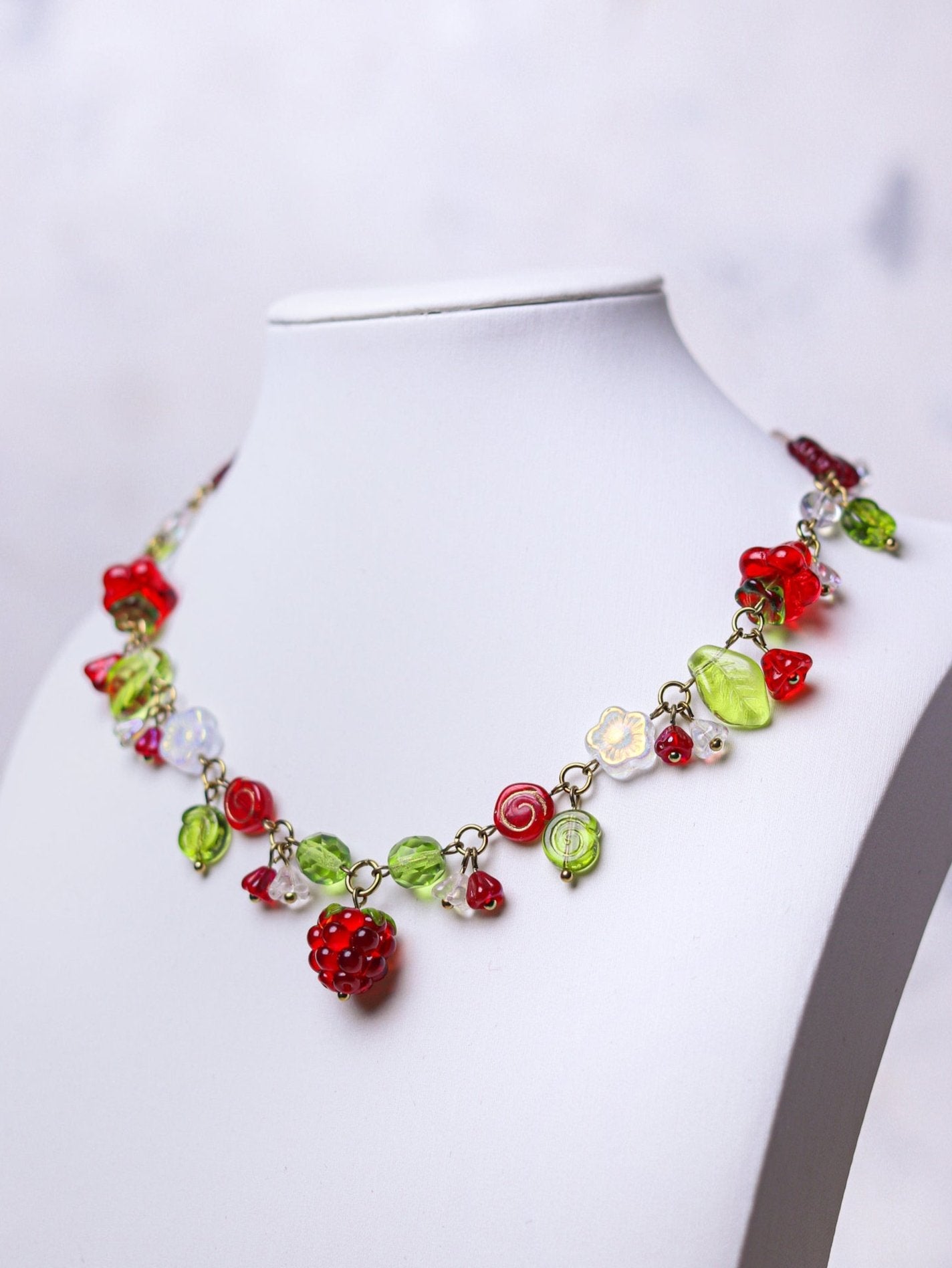 Made with high quality Czech glass beads and lampwork raspberry bead. The wire and chains are stainless steel (waterproof and tarnish-resistant).