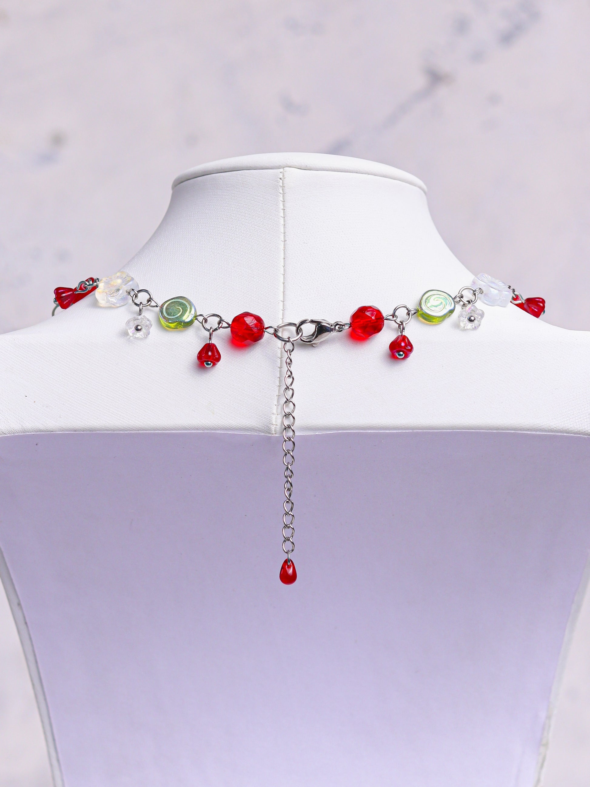 Made with high quality Czech glass beads and lampwork raspberry bead. The wire and chains are stainless steel (waterproof and tarnish-resistant).