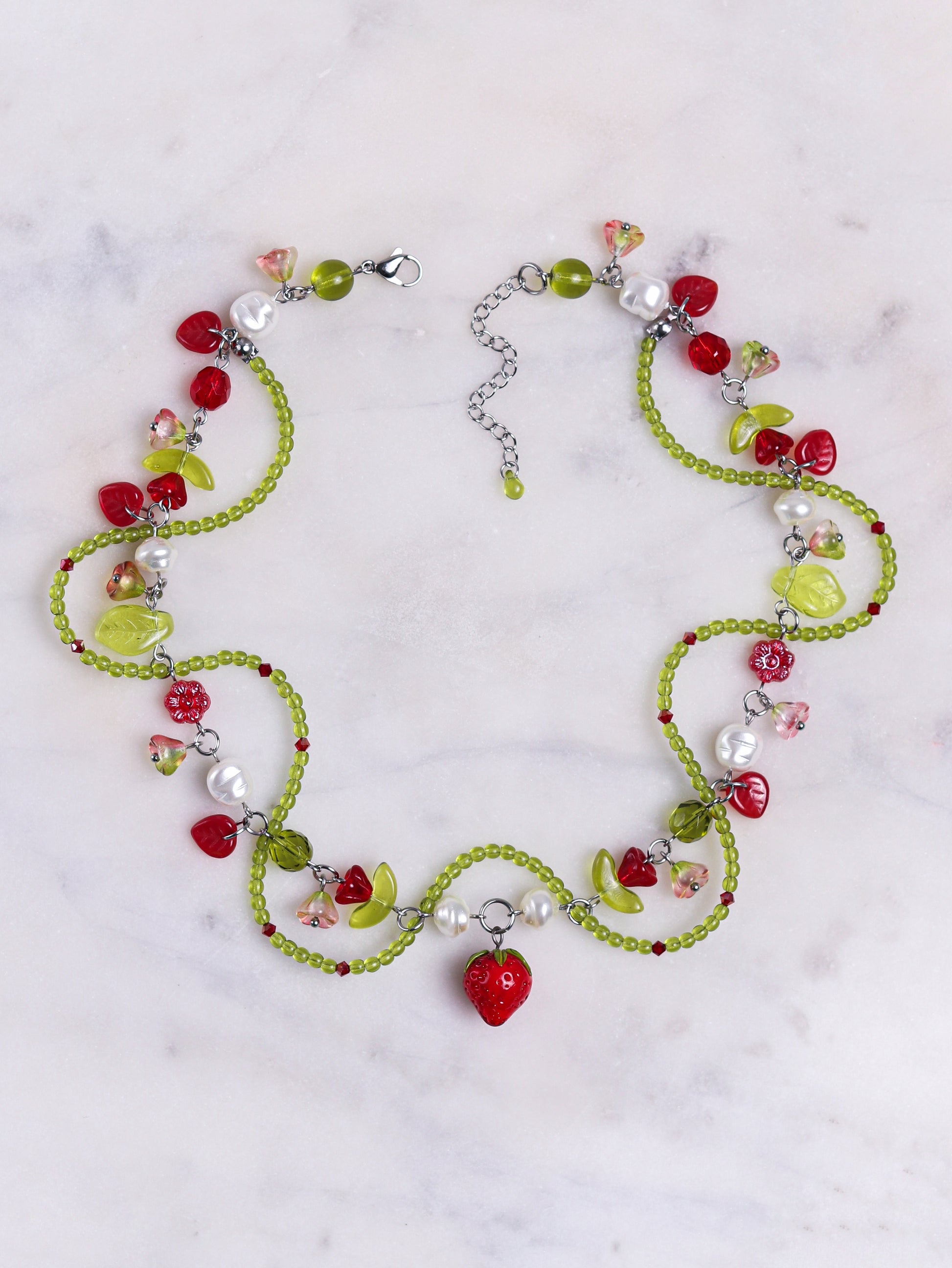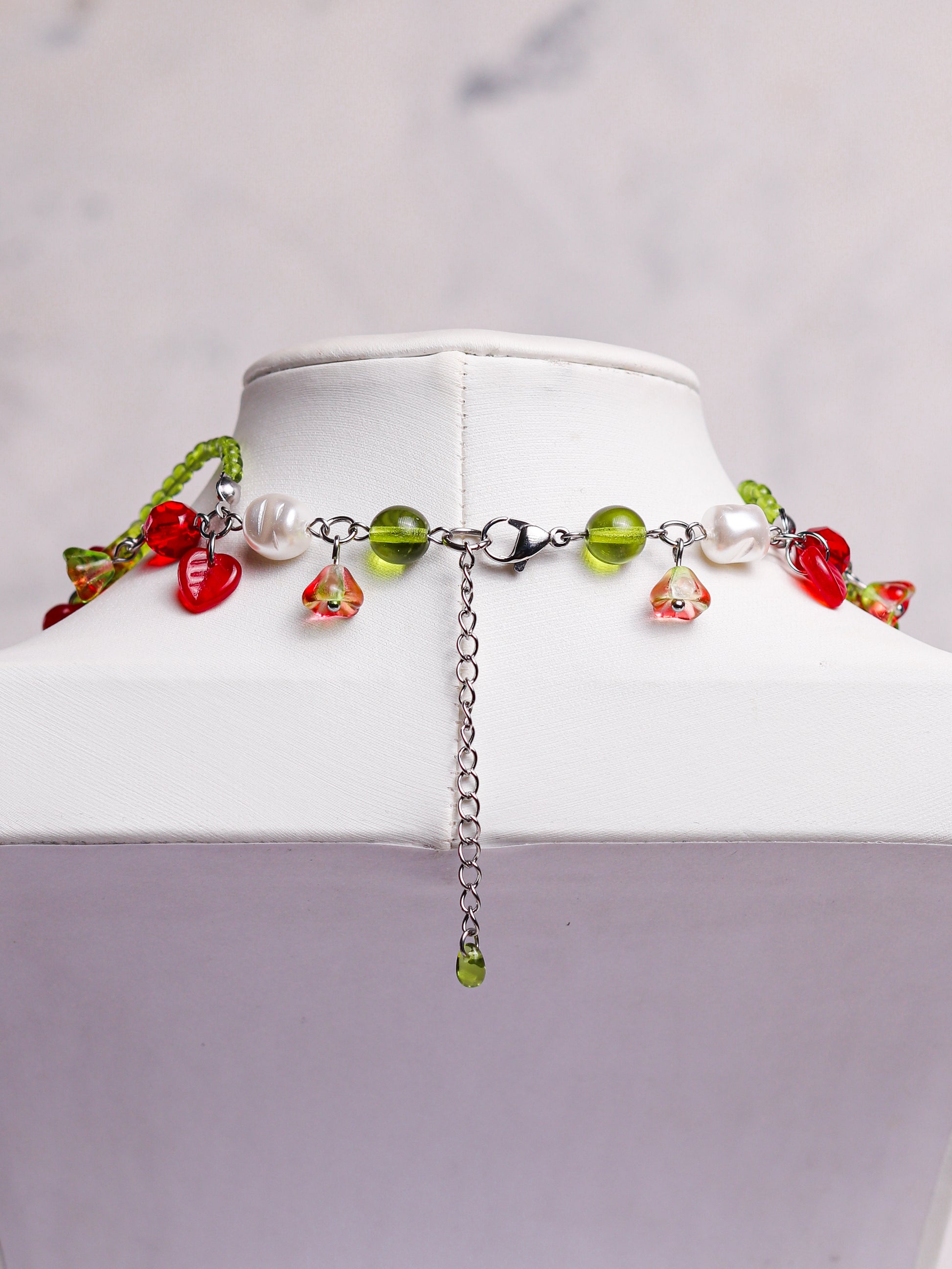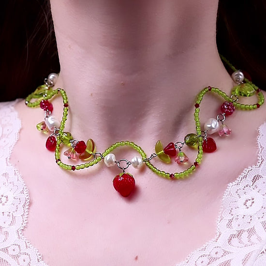 Made with high quality Czech glass beads, glass imitation pearls and a lampwork raspberry bead. The wire and chains are stainless steel (waterproof and tarnish-resistant).