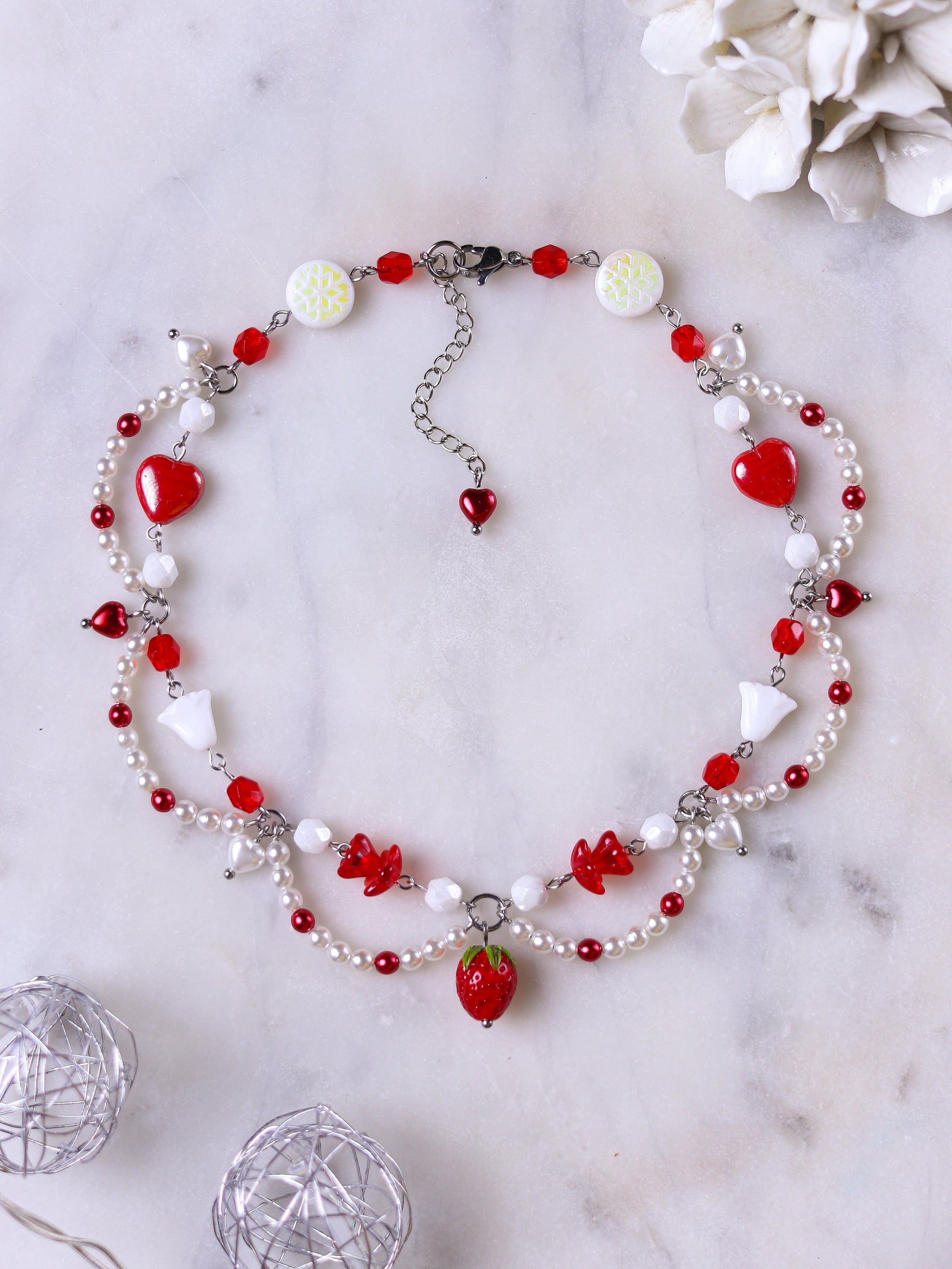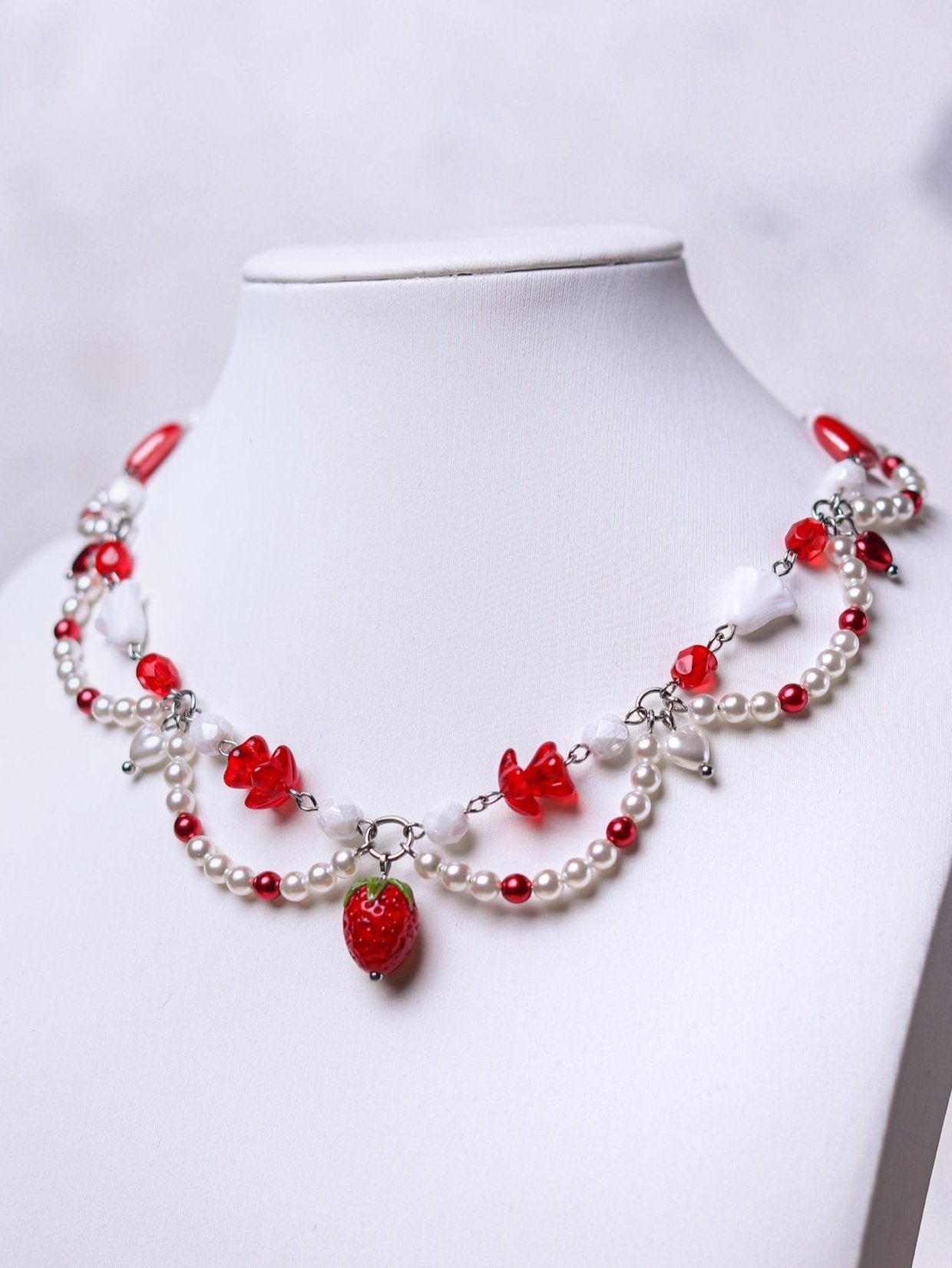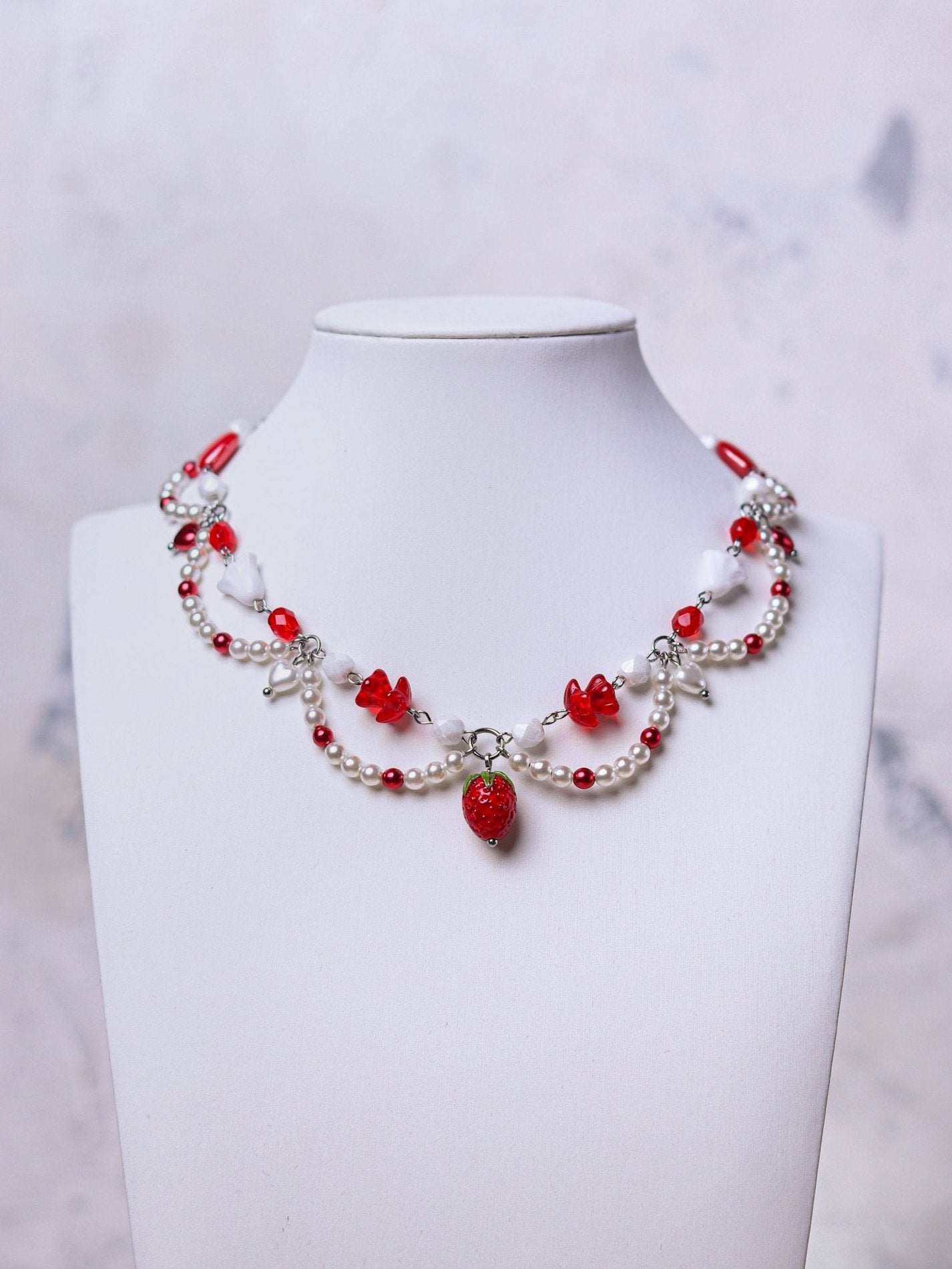 Made with high quality Czech glass beads and lampwork strawberry bead. The wire and chains are stainless steel (waterproof and tarnish-resistant).