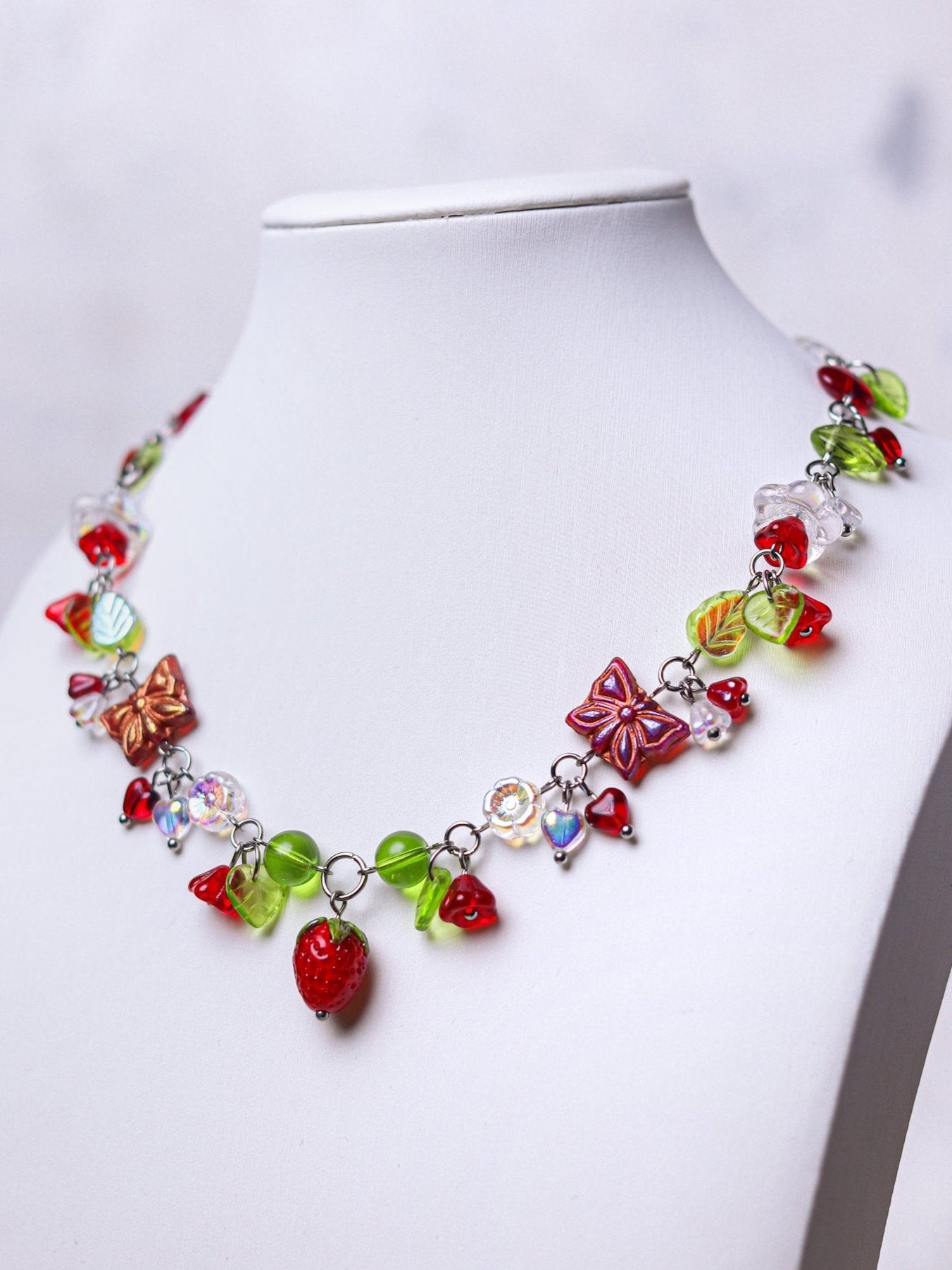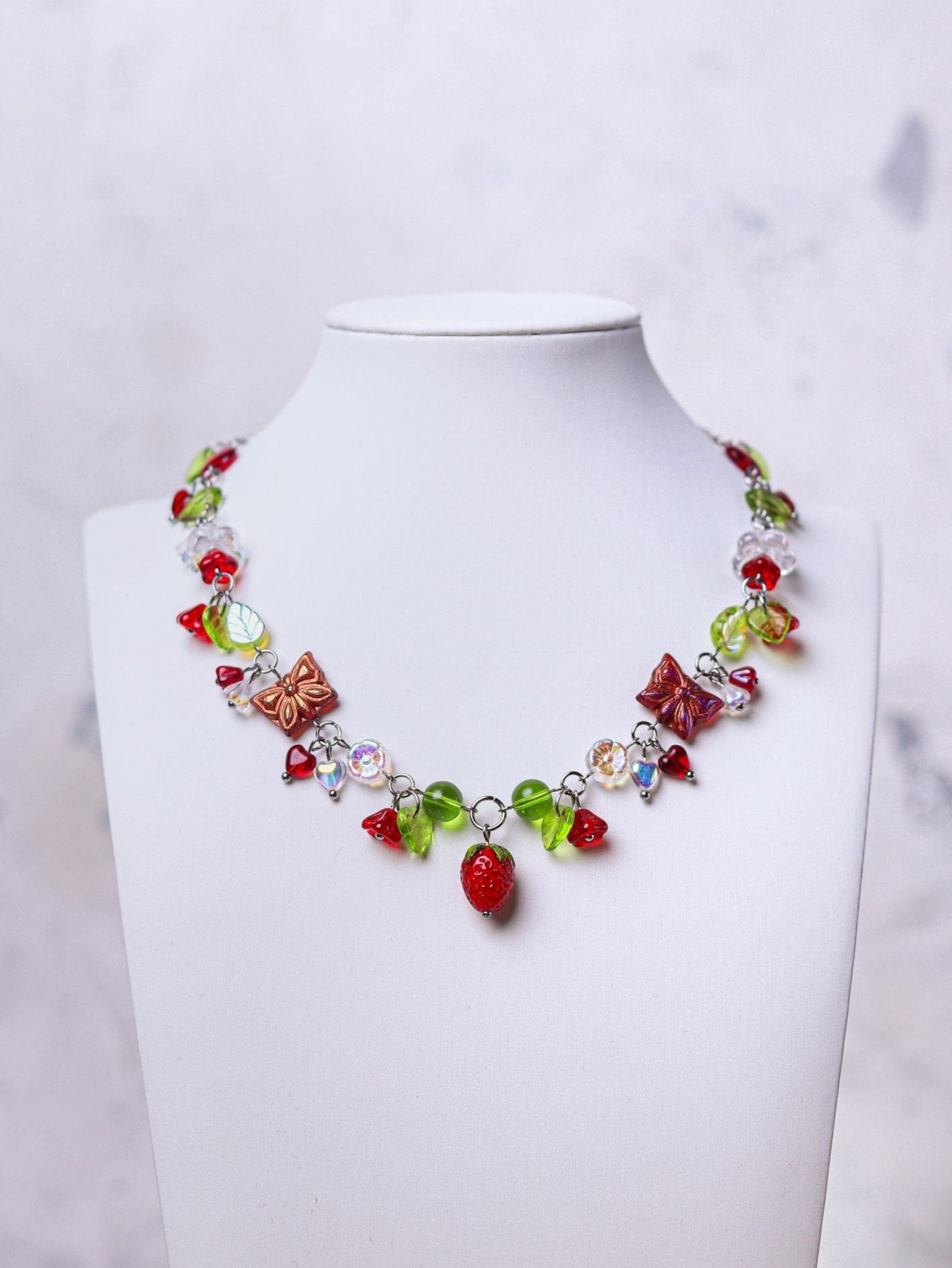 Made with high quality Czech glass beads and lampwork strawberry bead. The wire and chains are stainless steel (waterproof and tarnish-resistant).